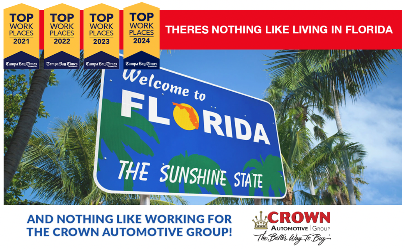 Looking for the best place to start or continue your career? We hope you’ll consider Crown Automotive Group! Since 1969, Crown Automotive Group has served as an employer of choice for those on our team. However, joining our team in Florida has more benefits than the ones you’ll find as an employee.