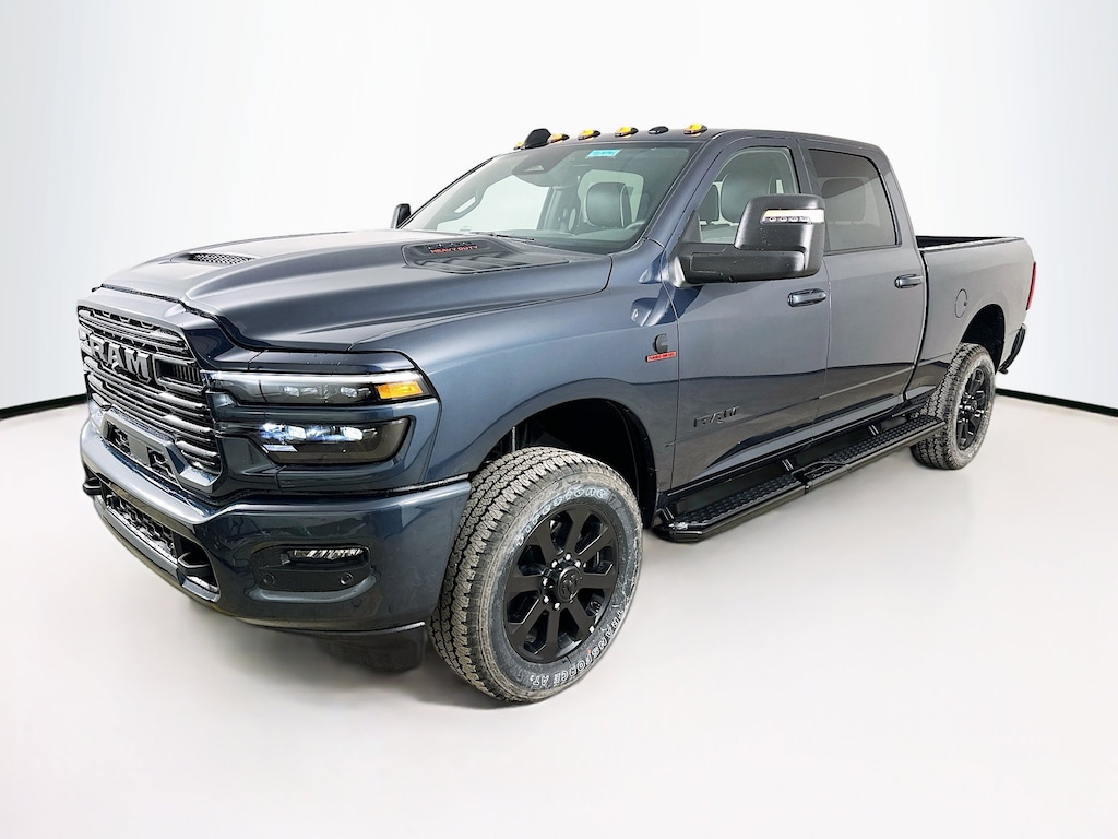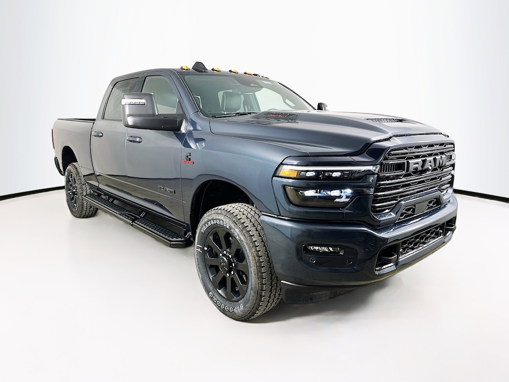 #1 Seat Foam Cushion, 10 Speakers, 115V Auxiliary Rear Power Outlet, 2 Way Rear Headrest Seat, 2nd Row in Floor Storage Bins, 4 Way Front Headrests, 4-Wheel Disc Brakes, 4G LTE Wi-Fi Hot Spot, 5th Wheel/Gooseneck Towing Prep Group, ABS brakes, Active Lane Management System, Adaptive Steering System, Air Conditioning, Alexa Built-in, Alloy wheels, AM/FM radio: SiriusXM with 360L, Anti-Spin Differential Rear Axle, Apple CarPlay, Apple CarPlay/Android Auto, Auto Adjust in Reverse Exterior Mirrors, Auto Dim Exterior Mirror, Auto High Beam Headlamp Control, Auto Power-Folding Mirrors, Auto-Dimming Exterior Passenger Mirror, Auto-dimming Rear-View mirror, Automatic temperature control, Black Exterior Mirrors, Black Exterior Truck Badging, Black Wheel Center Hub, Body Color Grille-Surround, Brake assist, Bucket Seats, Bumpers: body-color, Center Stop Lamp with Cargo View Camera, Chrome Exterior Mirrors, Clearance Lamps, Compass, Connected Travel and Traffic Services, Connectivity - US/Canada, Delay-off headlights, Disassociated Touchscreen Display, Driver door bin, Driver vanity mirror, Drowsy Driver Detection, Dual front impact airbags, Dual front side impact airbags, Dual Wireless Charging Pad, Electronic Stability Control, Emergency Vehicle Alert System (EVAS), Exterior Mirrors Courtesy Lamps, Exterior Mirrors with Heating Element, Exterior Mirrors with Memory, Exterior Mirrors with Supplemental Signals, Foam Bottle Insert (door Trim Panel), Folding Flat Load Floor Storage, For Details, Visit DriveUconnect.com, For More Info, Call 800-643-2112, Forward and Reverse Utility Lights, Front anti-roll bar, Front Center Armrest w/Storage, Front dual zone A/C, Front fog lights, Front License Plate Bracket, Front reading lights, Front Seat Back Map Pockets, Full Length Upgraded Floor Console, Fully automatic headlights, Garage door transmitter, Global Telematics Box Module, Gloss Black Grille Billets/Accents, Google Android Auto, GPS Antenna Input, GPS Navigation, HD Radio, Heated door mirrors, Heated Front Seats, Heated front seats, Heated Steering Wheel, Heated steering wheel, High Back Seats, Illuminated entry, Integrated Voice Command with Bluetooth, Laramie Level 1 Plus Equipment Group, Leather Trim 40/20/40 Bench Seat, Leather Trimmed Bucket Seats, LED Bed Lighting, Low tire pressure warning, Manufacturer's Statement of Origin, Mirror Running Lights, MOPAR Deployable Bed Step, MOPAR Spray in Bedliner, Navigation System, Night Edition, Occupant sensing airbag, Off-Road Info Pages, Outside temperature display, Overhead airbag, Overhead console, Painted Flat Wheel-to-Wheel Side Steps, Panic alarm, ParkView Rear Back-Up Camera, Passenger door bin, Passenger vanity mirror, Power 2-Way Driver Lumbar Adjust, Power 2-Way Passenger Lumbar Adjust, Power Adjust 8-Way Driver Seat, Power Adjust 8-Way Front Passenger Seat, Power Adjust Mirrors, Power Adjustable Pedals with Memory, Power door mirrors, Power driver seat, Power Heated Fold Telescopic Mirrors with Memory, Power passenger seat, Power steering, Power Telescoping Mirrors, Power windows, Power-Adjustable Convex Aux Mirrors, Quick Order Package 24H Laramie, Radio data system, Radio: Uconnect 5 Navigation with 12.0" Display, Radio/Driver Seat/Mirrors/Pedals Memory, Rain Sensitive Windshield Wipers, Rear 60/40 Folding Seat, Rear anti-roll bar, Rear reading lights, Rear seat center armrest, Rear step bumper, Rear window defroster, Remote keyless entry, Remote Tailgate Release, Security system, Selectable Tire Fill Alert, SiriusXM Radio Service, SiriusXM with 360L, Speed control, Split folding rear seat, Sport Performance Hood, Steering wheel mounted audio controls, Tachometer, Tilt steering wheel, Traction control, Traffic Sign Recognition, Trailer Tow Pages, Trip computer, Turn signal indicator mirrors, Variably intermittent wipers, Ventilated Front Seats, Voltmeter, Wheels: 18" x 8.0" Diamond Cut Aluminum with Black Pt Po Price includes: $1000 - 2026 National Bonus Cash . Exp. 02/02/2026BEDLINER, SPRAY-IN BED LINER, DIESEL, BACK-UP CAMERA, TOW PACKAGE, 4X4, LEATHER, HEATED FRONT SEATS, HEATED STEERING WHEEL, NAVIGATION, BLUETOOTH®, REAR PARKING AID, MP3 Player, BLIND SPOT MONITORING, KEYLESS ENTRY, SAT RADIO, WIRELESS CHARGING, LED HEADLIGHTS, 20" WHEELS, ALLOY WHEELS.