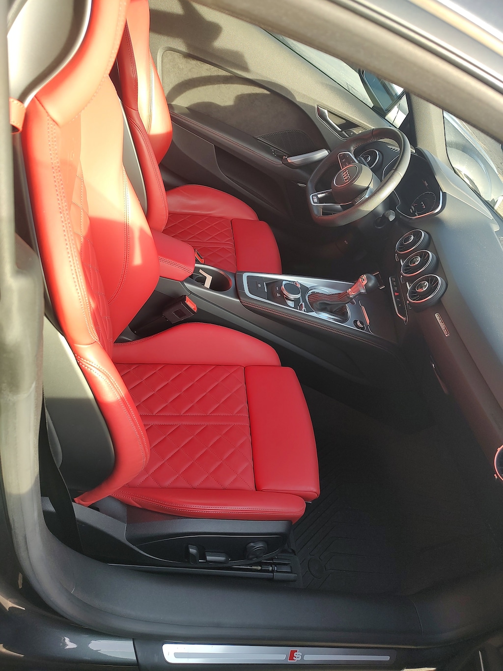 12 Speakers, 4-Wheel Disc Brakes, ABS brakes, Adaptive suspension, Air Conditioning, Alloy wheels, AM/FM radio: SiriusXM, Audi Connect, Audi Phone Box w/Wireless Charging, Auto-dimming door mirrors, Auto-dimming Rear-View mirror, Automatic temperature control, Brake assist, Brushed Aluminum Matte Inlays, Bumpers: body-color, Compass, Delay-off headlights, Driver door bin, Driver vanity mirror, Dual front impact airbags, Dual front side impact airbags, Electronic Stability Control, Exterior Parking Camera Rear, Fine Nappa Leather Seat Trim w/S Embossing, Four wheel independent suspension, Front anti-roll bar, Front Bucket Seats, Front Center Armrest, Front fog lights, Front reading lights, Fully automatic headlights, Garage door transmitter: HomeLink, Heated door mirrors, Heated Front S Sport Seats, Heated front seats, Illuminated entry, Knee airbag, Leather Shift Knob, Low tire pressure warning, MMI Navigation Plus w/MMI Touch, Navigation system: MMI Navigation plus, Occupant sensing airbag, Outside temperature display, Overhead airbag, Panic alarm, Passenger door bin, Passenger vanity mirror, Power door mirrors, Power driver seat, Power passenger seat, Power steering, Power windows, Radio data system, Radio: Bang & Olufsen Sound System, Rain sensing wipers, Rear anti-roll bar, Rear fog lights, Rear window defroster, Remote CD player, Remote keyless entry, Security system, Speed control, Speed-sensing steering, Speed-Sensitive Wipers, Split folding rear seat, Spoiler, Sport steering wheel, Steering wheel mounted audio controls, Tachometer, Telescoping steering wheel, Tilt steering wheel, Traction control, Trip computer, Turn signal indicator mirrors, Variably intermittent wipers, Wheels: 20" Audi Sport 10-Y-Spoke Forged.