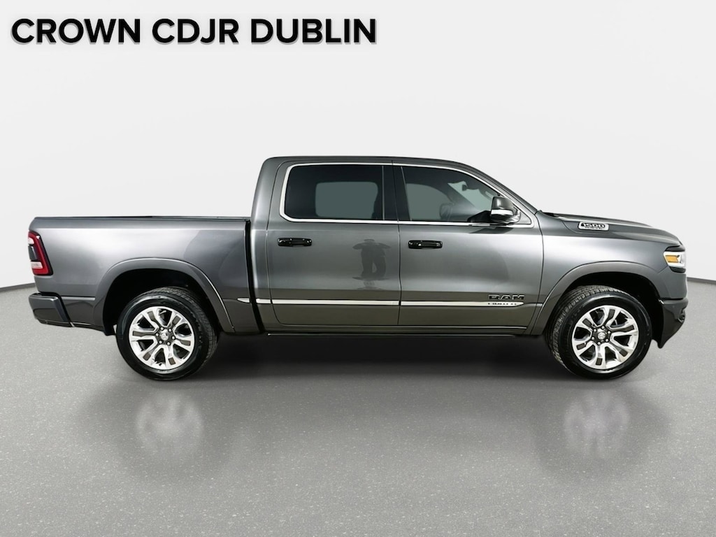 1-Yr SiriusXM Guardian Trial, 10 Speakers, 12" Touchscreen Display, 4-Wheel Disc Brakes, 48V Belt Starter Generator, ABS brakes, Adjustable pedals, Air Conditioning, Alloy wheels, AM/FM radio: SiriusXM with 360L, Anti-Spin Differential Rear Axle, Apple CarPlay, Apple CarPlay/Android Auto, Audio memory, Auto High-beam Headlights, Auto-dimming door mirrors, Auto-dimming Rear-View mirror, Auto-leveling suspension, Automatic temperature control, Body Color Front Bumper, Body Color Rear Bumper w/Step Pads, Bodyside moldings, Brake assist, Bumpers: chrome, Compass, Delay-off headlights, Disassociated Touchscreen Display, Dome Dual LED Reading Lamp, Driver door bin, Driver vanity mirror, Dual front impact airbags, Dual front side impact airbags, Dual-Pane Panoramic Sunroof, Electronic Stability Control, Emergency communication system: SiriusXM Guardian, Front anti-roll bar, Front Bucket Seats, Front Center Armrest w/Storage, Front dual zone A/C, Front fog lights, Front reading lights, Front wheel independent suspension, Fully automatic headlights, Garage door transmitter, Genuine wood console insert, Genuine wood dashboard insert, Genuine wood door panel insert, Google Android Auto, GPS Antenna Input, GPS Navigation, HD Radio, Heated door mirrors, Heated front seats, Heated rear seats, Heated steering wheel, Illuminated entry, Integrated Center Stack Radio, Kentucky Derby Edition (DISC), Kentucky Derby Edition Decal, Leather steering wheel, LED Dome/Reading Lamp, Limited Level 1 Equipment Group, Low tire pressure warning, Memory seat, Navigation System, Occupant sensing airbag, Outside temperature display, Overhead airbag, Overhead console, Panic alarm, ParkView Rear Back-Up Camera, Passenger door bin, Passenger vanity mirror, Pedal memory, Power door mirrors, Power driver seat, Power passenger seat, Power steering, Power windows, Premium Leather Trimmed Bucket Seats, Quick Order Package 25M Limited, Radio data system, Radio: Uconnect 12 w/Navigation, Rain sensing wipers, Rear anti-roll bar, Rear seat center armrest, Rear step bumper, Rear window defroster, Remote CD player, Remote keyless entry, Security system, SiriusXM Satellite Radio, SiriusXM Traffic Plus, SiriusXM Travel Link, SiriusXM w/360L, Speed control, Split folding rear seat, Steering wheel mounted audio controls, Tachometer, Telescoping steering wheel, Tilt steering wheel, Traction control, Trailer Brake Control, Tri-Fold Tonneau Cover, Trip computer, Turn signal indicator mirrors, USB Host Flip, Variably intermittent wipers, Ventilated front seats, Voltmeter, Wheels: 20" x 9" Polished w/Inserts, Wheels: 22" x 9" Polish/Painted w/Inserts.